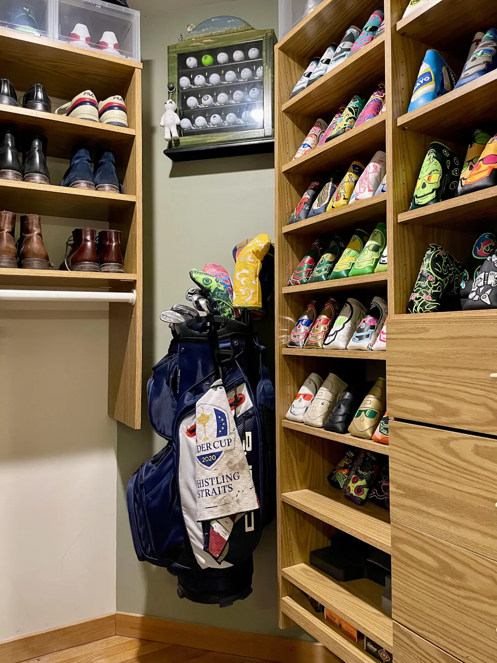 The centerpiece of our collection is the ClubsDock, a sleek and sturdy solution to neatly display your collection of golf bags and clubs.
